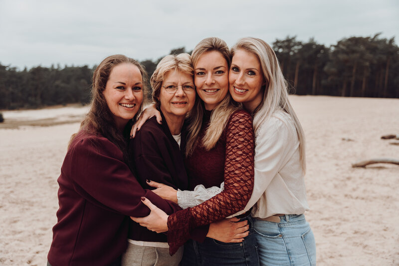 Een familieshoot is vooral ontspannen en gezellig! Geen stijve poses, maar spontane momenten en echte connecties. We beginnen vaak met een grote groepsfoto, zodat we die alvast hebben. Daarna neem ik de tijd om verschillende combinaties vast te leggen, zoals ouders met kinderen, opa en oma met de kleinkinderen, broers en zussen, stelletjes en individuele portretten.